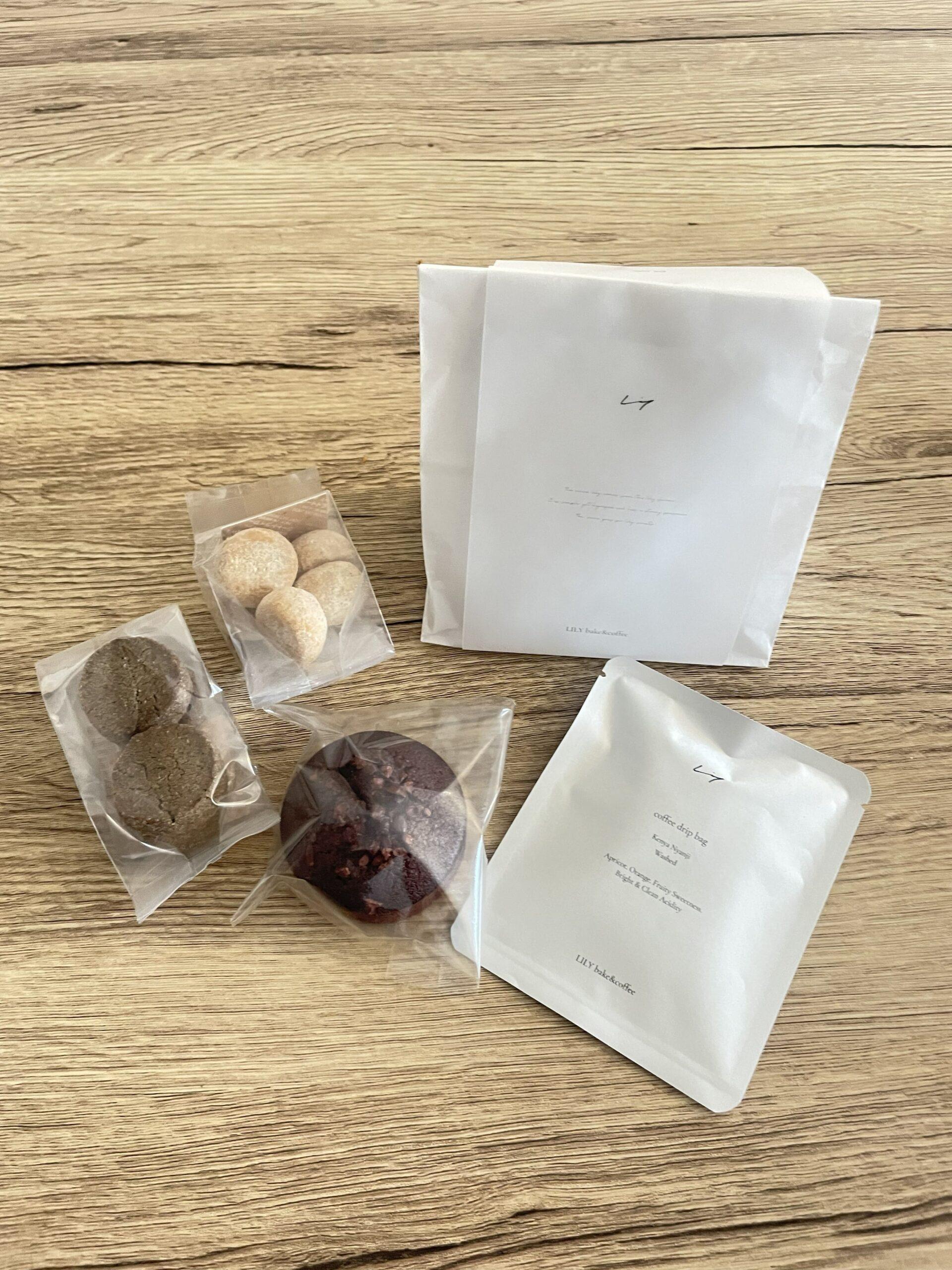 今回はきな粉スノーボールと紅茶サブレ、チョコフィナンシェとコーヒードリップセットを購入しました。